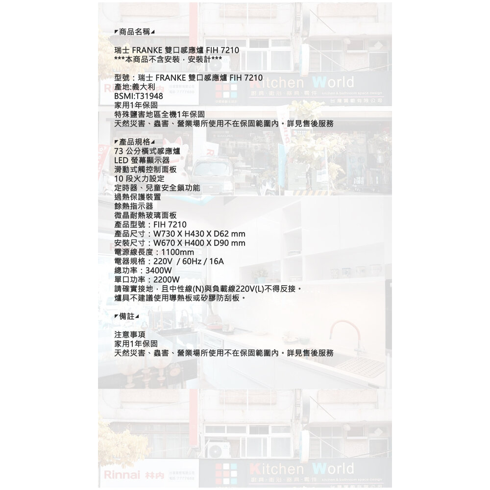 FIH 7210 瑞士 FRANKE 雙口感應爐 感應爐 IH