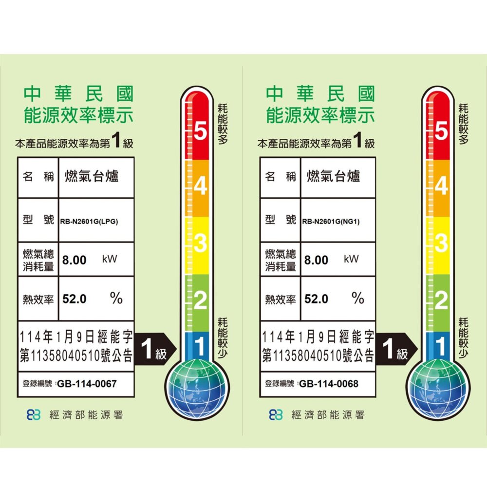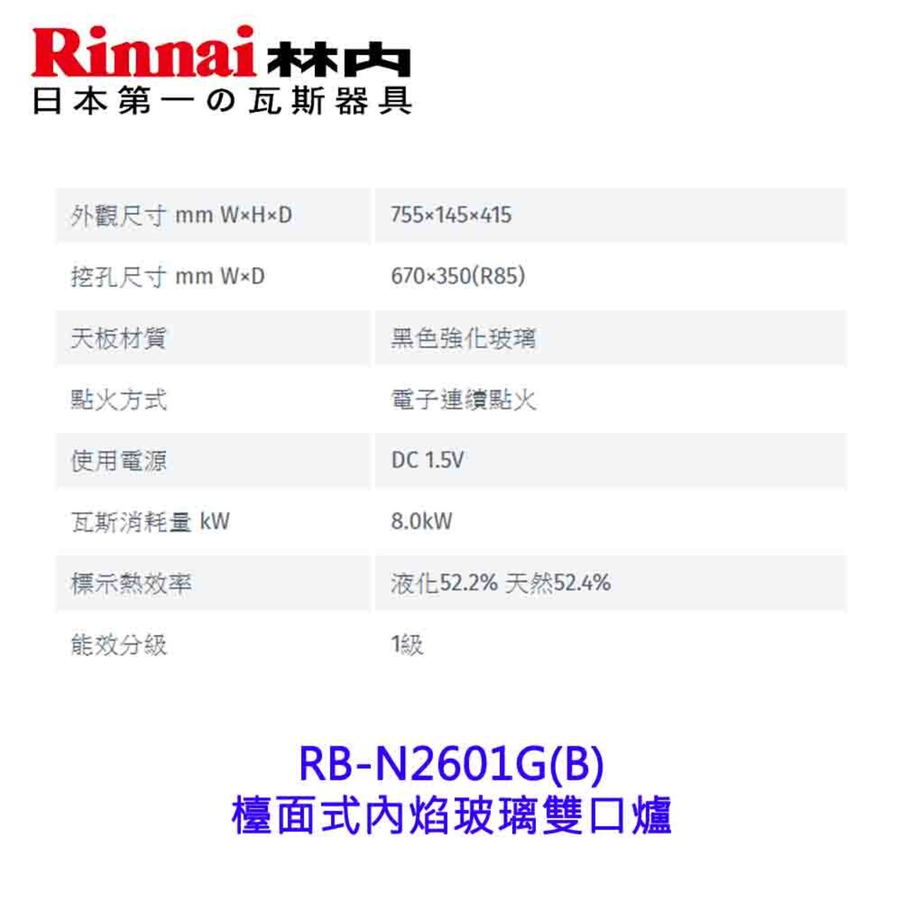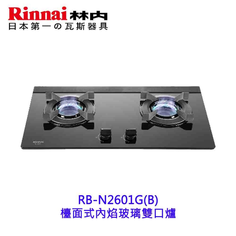 型號:林內牌 RB-N2601G(B) 檯面式內焰玻璃雙口爐
