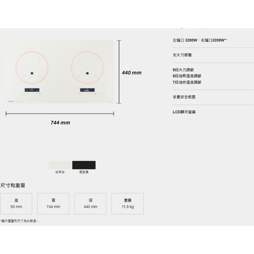 加熱範圍左爐口Φ190mm、右爐口Φ190mm