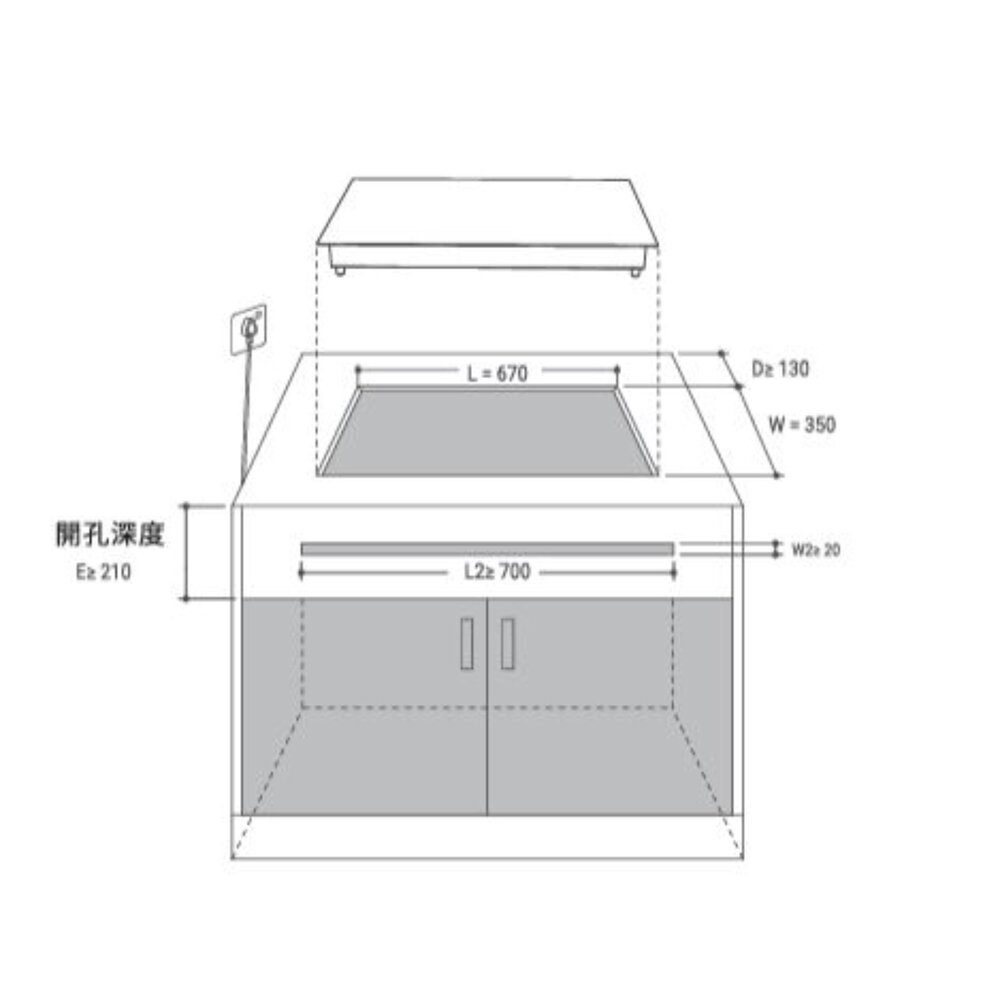 •挖孔尺寸(寬x深):W670xD350 mm R85