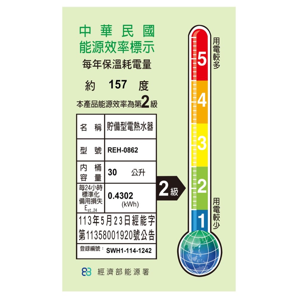 林內牌 REH-0862 8加侖 儲熱式 電熱水器