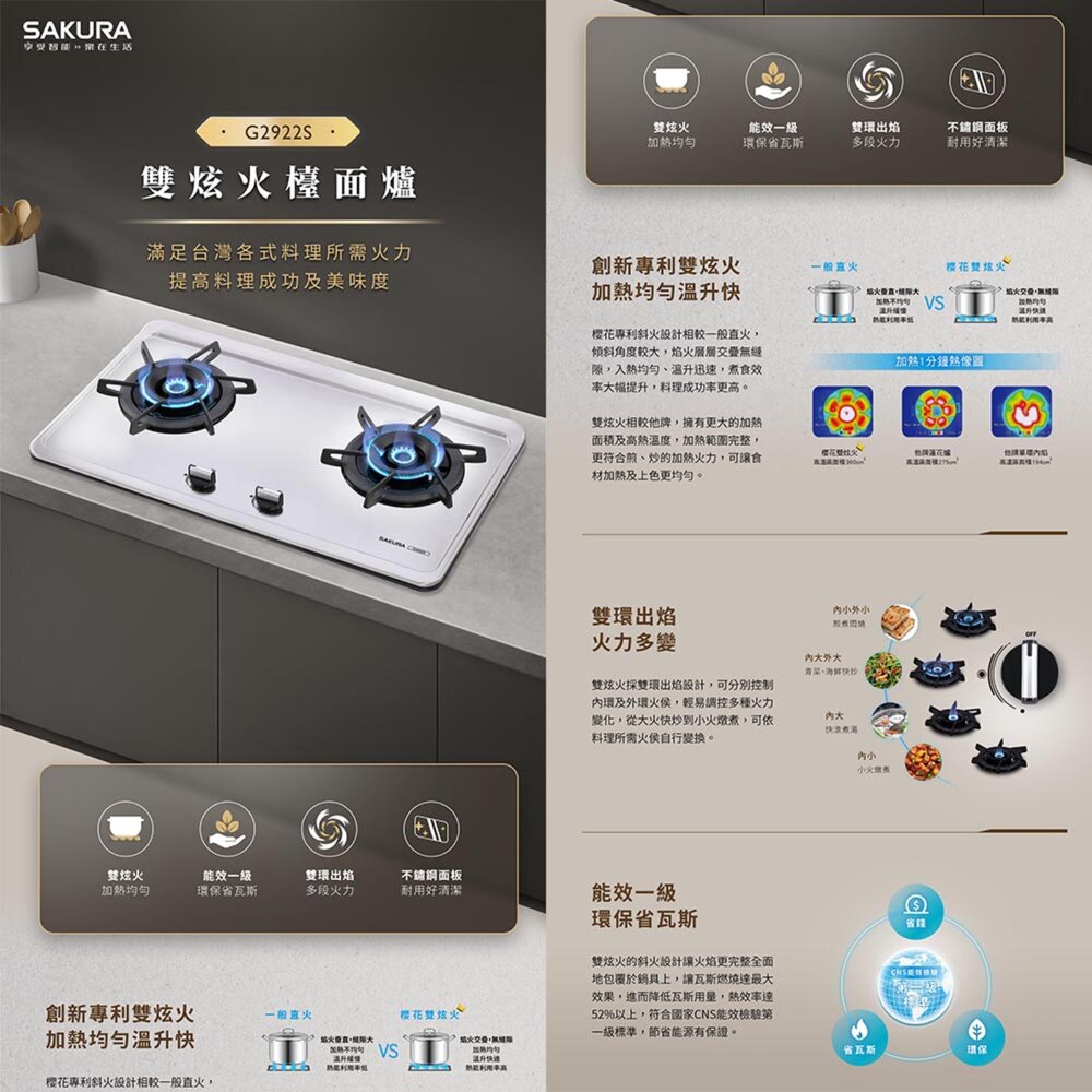 ▪ 內外雙環獨立控火,大火文火隨心所欲