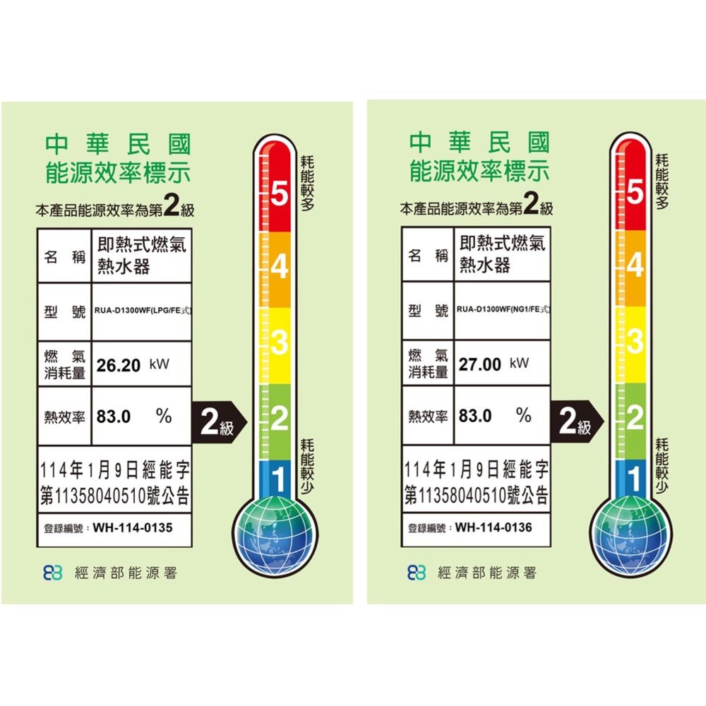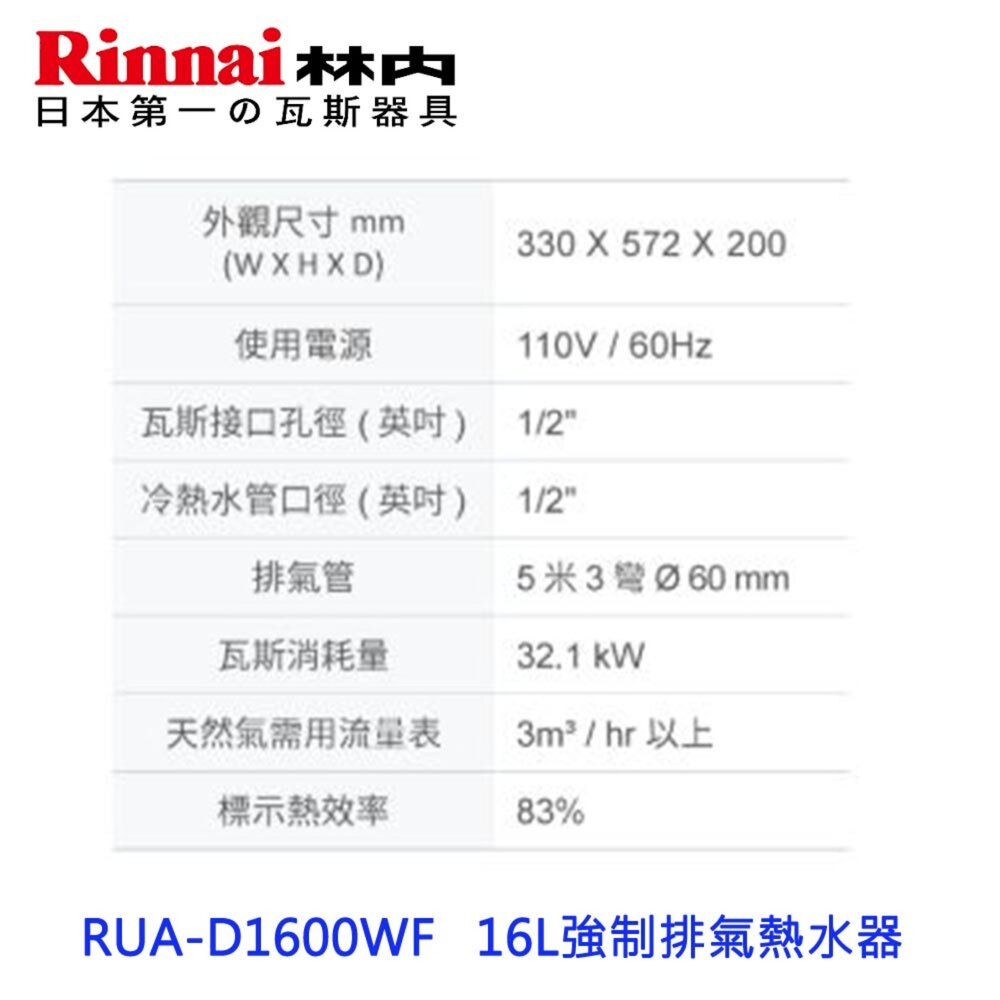RUA-D1600WF屋內型強制排氣熱水器 16L