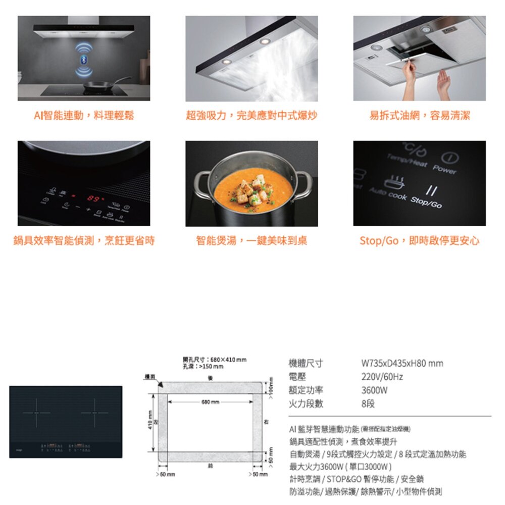 功能特色AI 藍芽智慧連動功能 ( 需搭配指定油煙機)