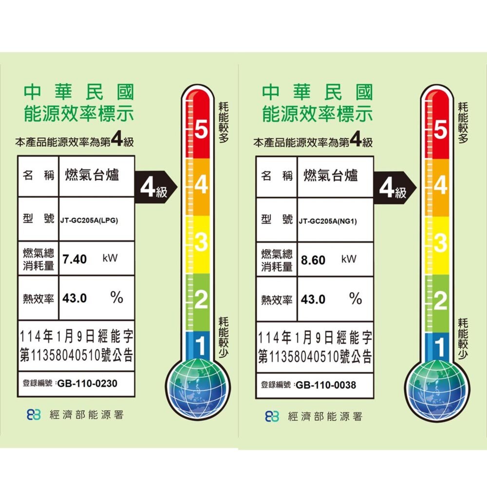 喜特麗 JT-GC205A 雙口玻璃檯面爐 瓦斯爐