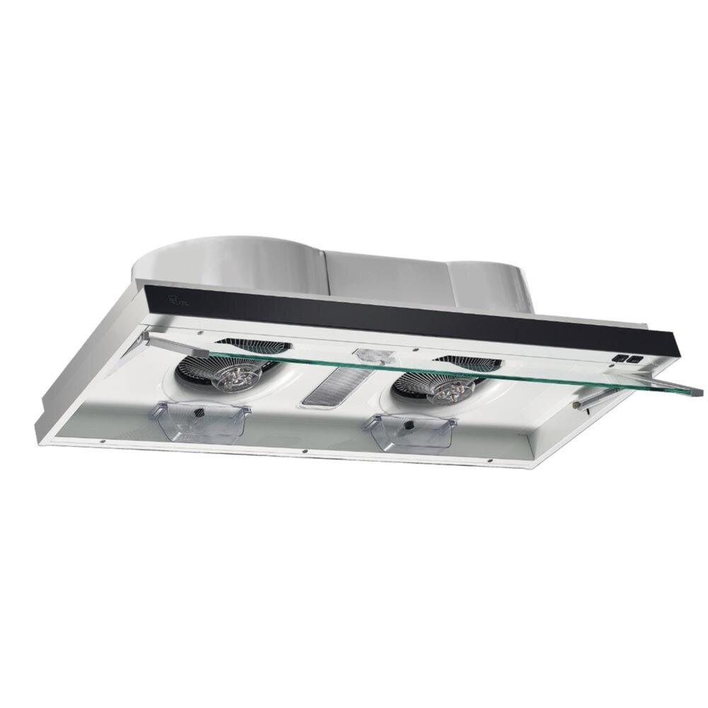 •翹翹板按壓式強化玻璃擋煙板,輕鬆推拉使用; 擋煙板未使用時完全隱藏,不佔空間