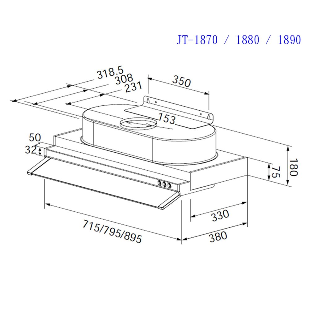 喜特麗 JT-1890 90公分 隱藏式排油煙機