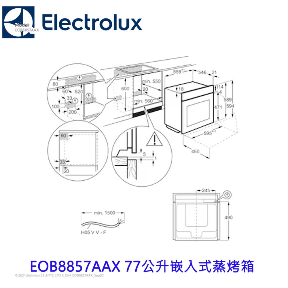 型號:Electrolux 伊萊克斯 EOB8857AAX 60公分 77公升嵌入式蒸烤箱