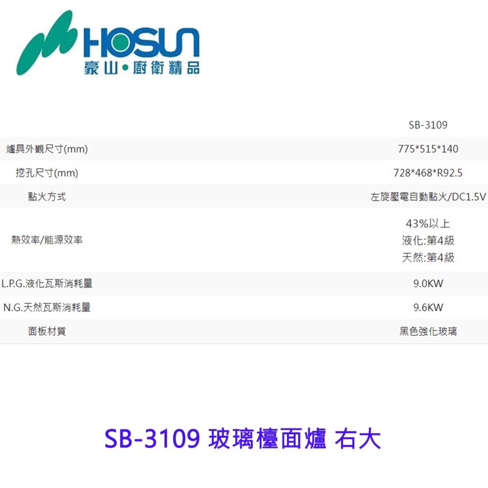 型號:H豪山牌 SB-3109 黑色玻璃 右邊大口