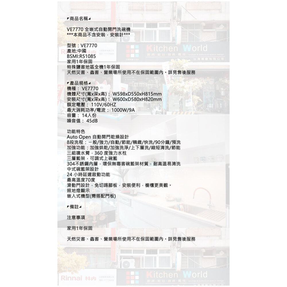 型號:SVAGO VE7770 全嵌式 自動開門 洗碗機