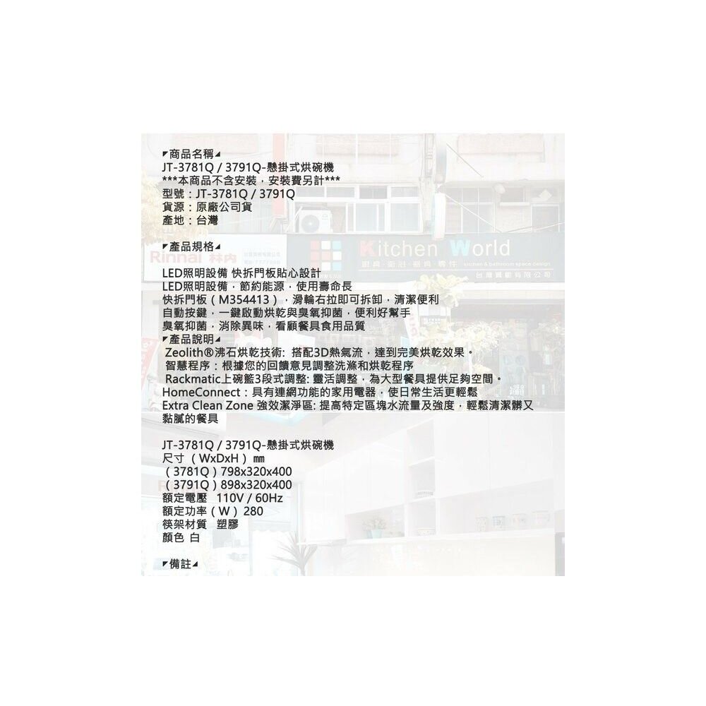喜特麗 JT-3781Q 3791Q 懸掛式烘碗機 掛式
