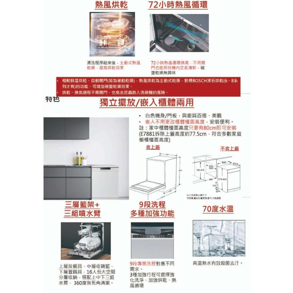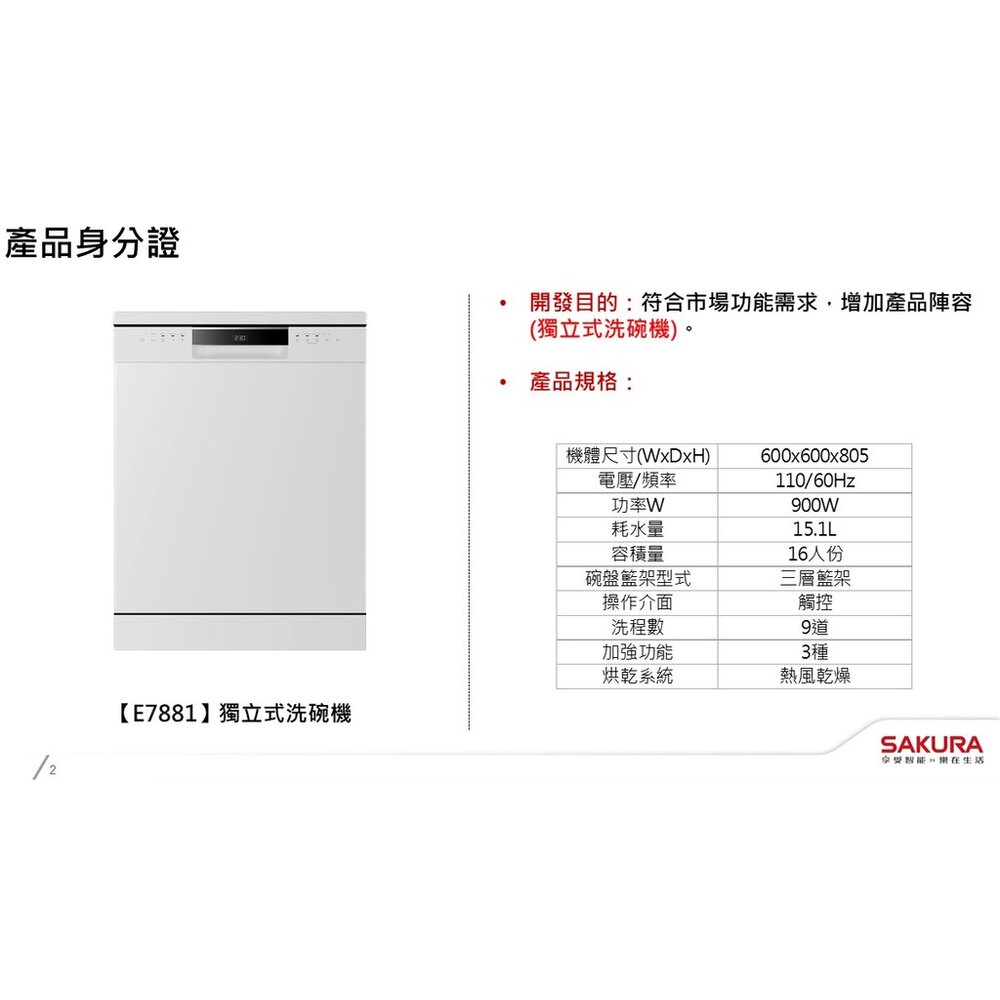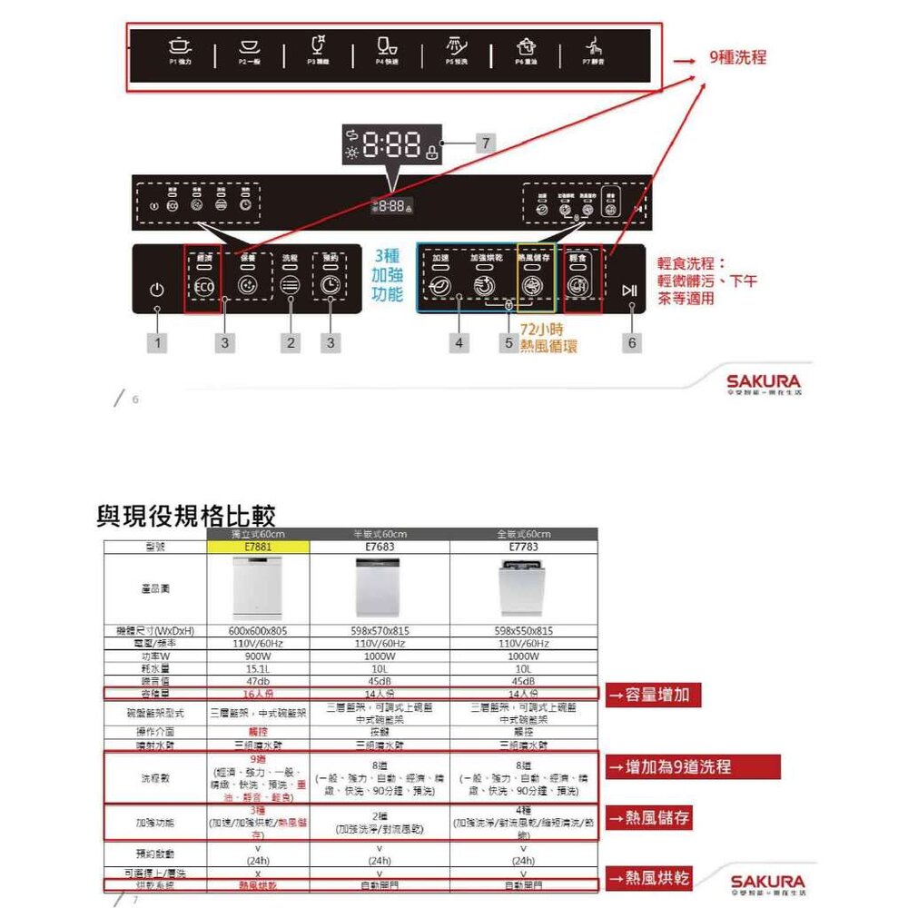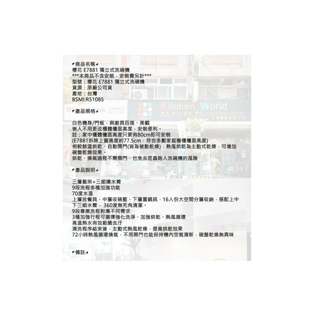 型號:櫻花牌 E7881 獨立式洗碗機