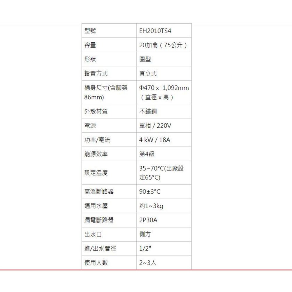 櫻花牌 EH2010TS4 定時 儲熱式 電熱水器 20加侖