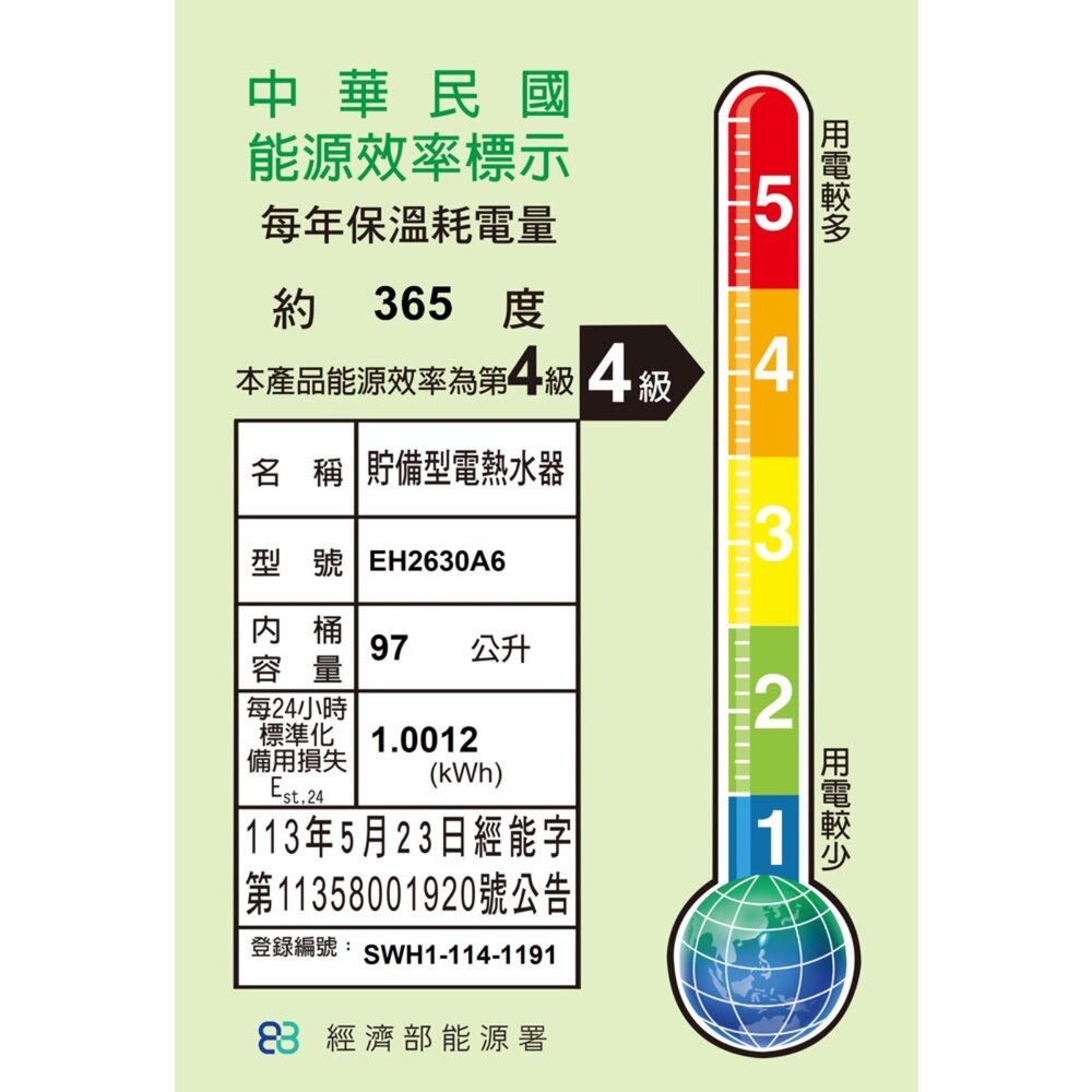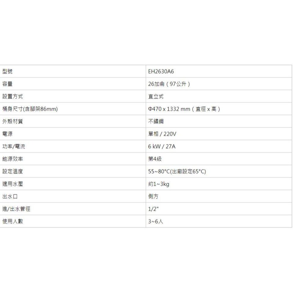 櫻花牌 EH2630A6 26加侖 倍容儲熱式電熱水器 <<直立式>>