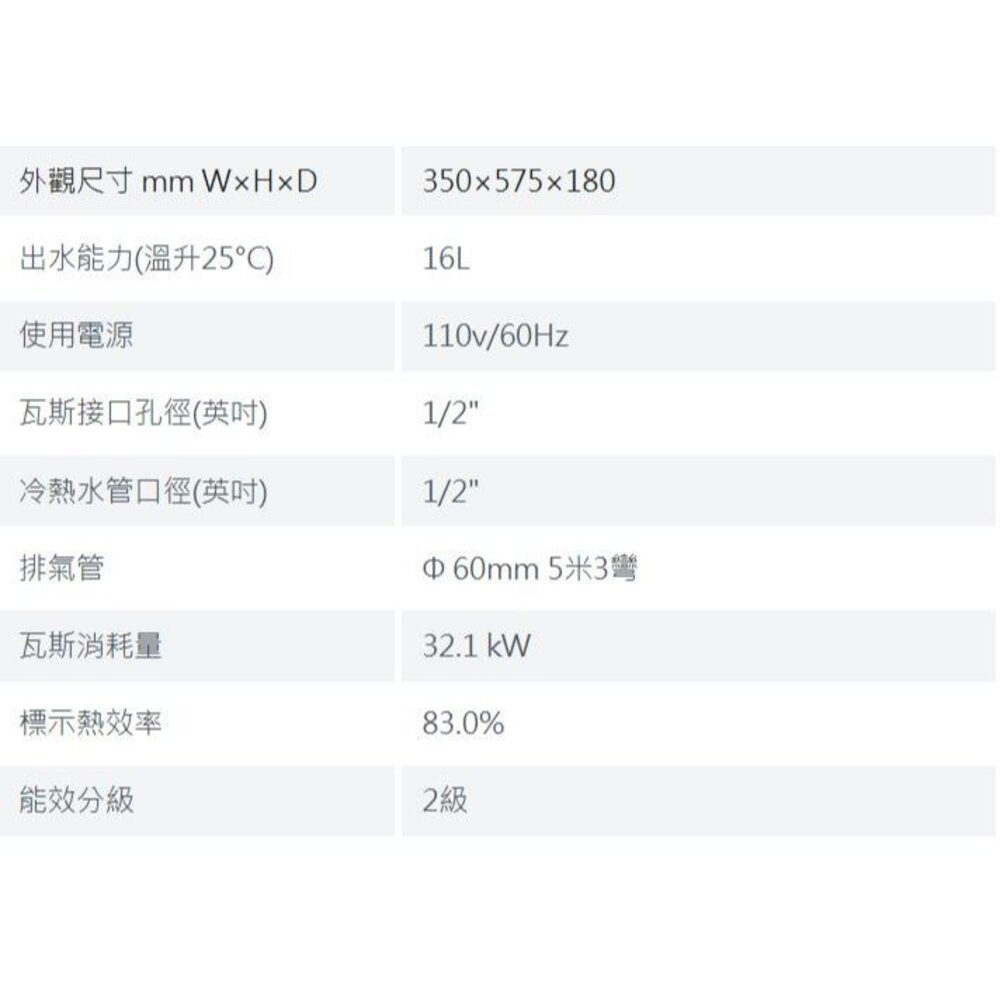 林內 UFB RUA-UC1628WF 屋內型 16L 強制排氣熱水器 精準控溫系列 熱水器 強排【KW廚房世界】