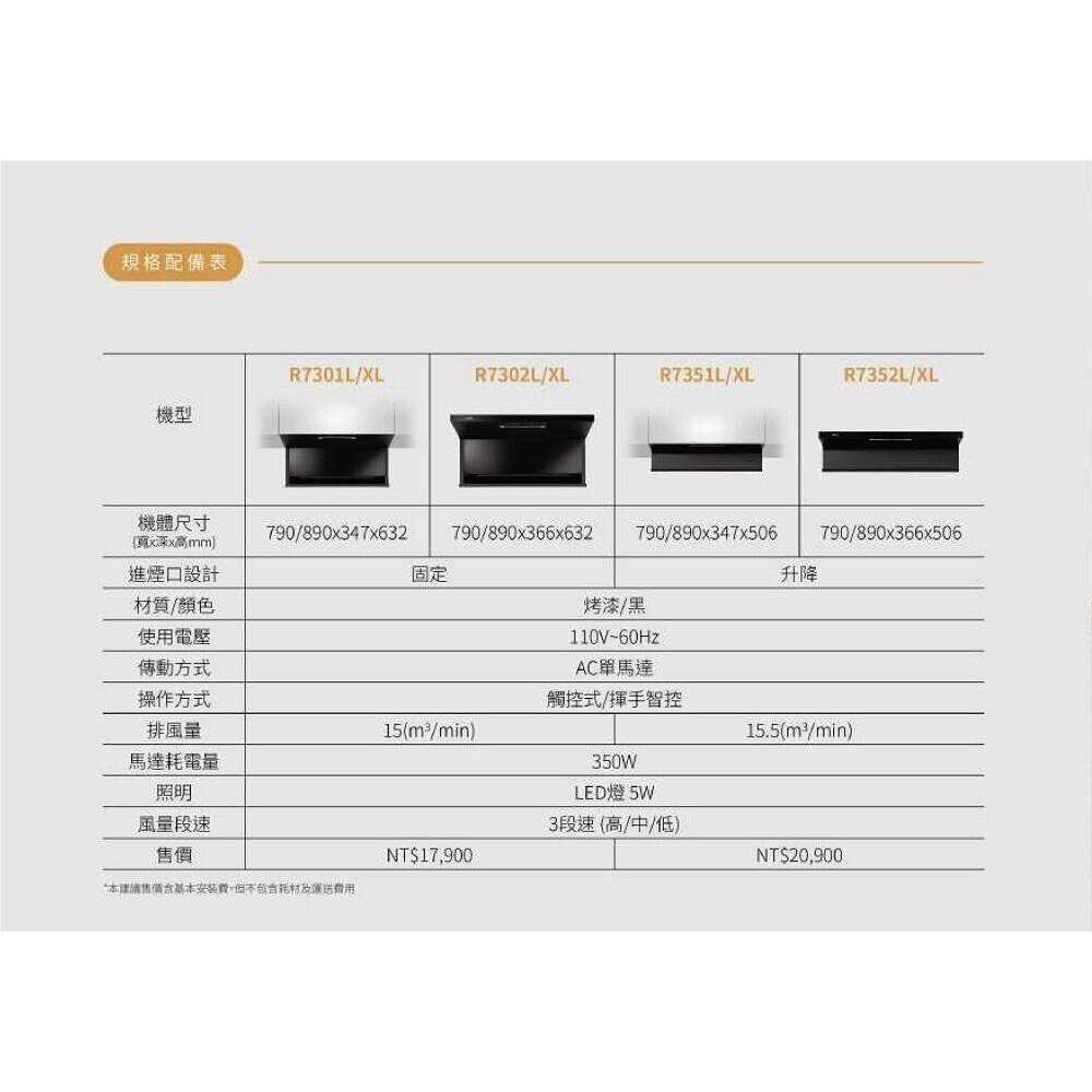 櫻花牌 R7351L/R7351XL 近吸除油煙機 全隱藏式抽油煙機