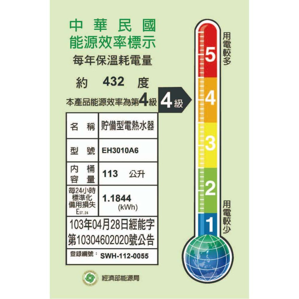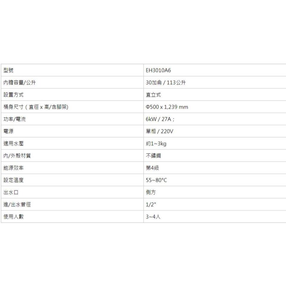 【櫻花牌】 EH3010A6 30加侖 儲熱式 電熱水器
