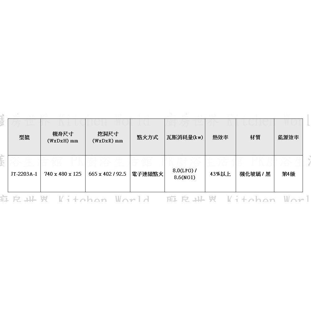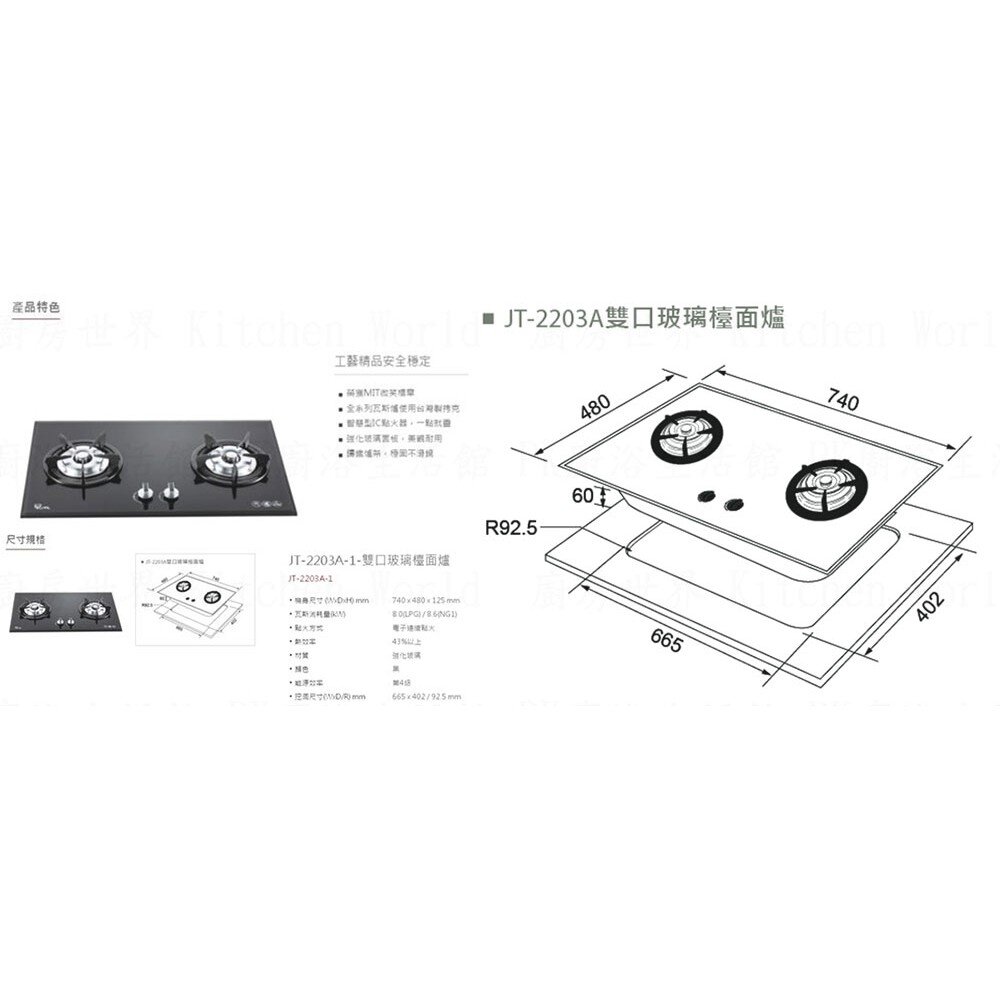 喜特麗 JT-2203A-1 雙口玻璃檯面爐
