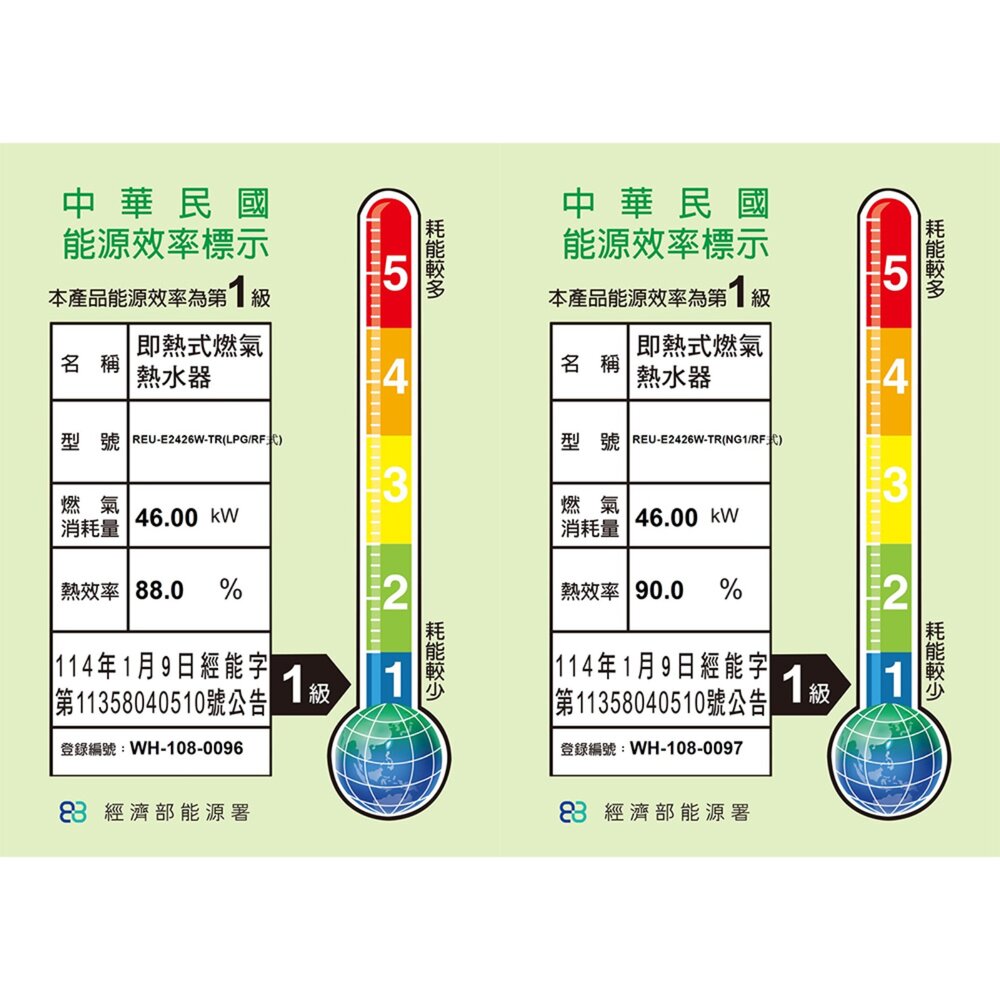 林內牌 REU-E2426W-TR 屋外型強制排氣 24L 潛熱回收熱水器