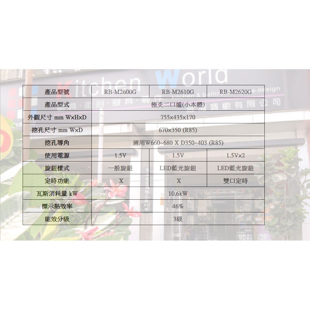 林內牌瓦斯爐 RB-M2600G 極炎二口爐(小本體)(一般旋鈕)