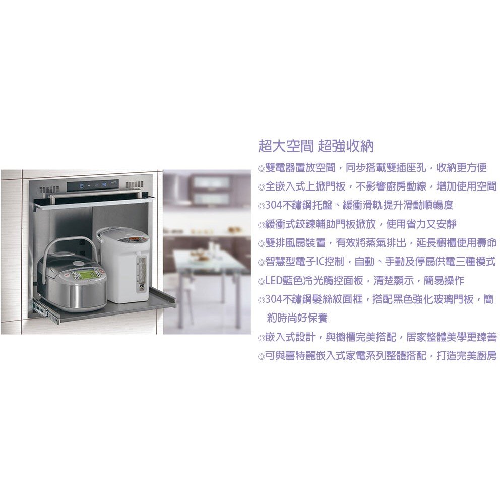 •雙排風扇裝置,蒸氣完全排出,延長櫥櫃使用期